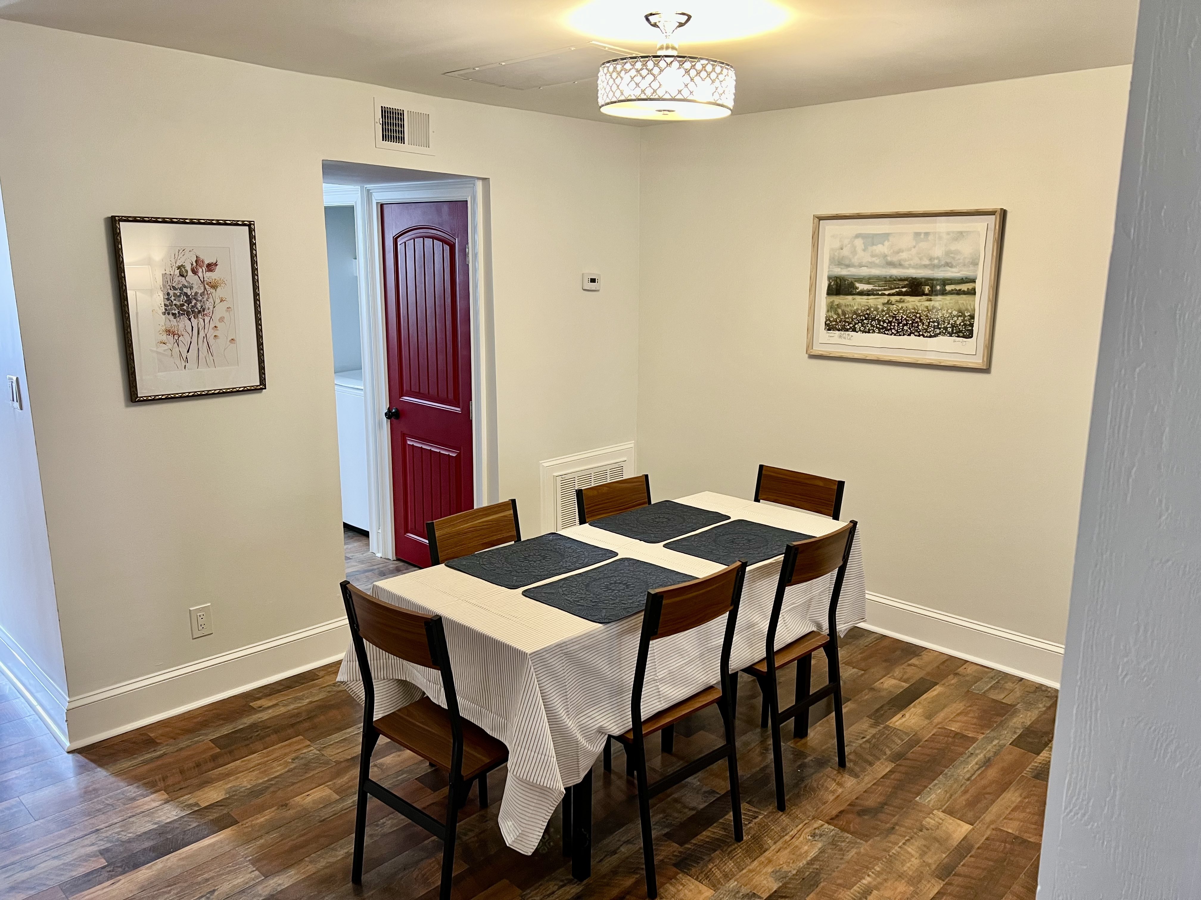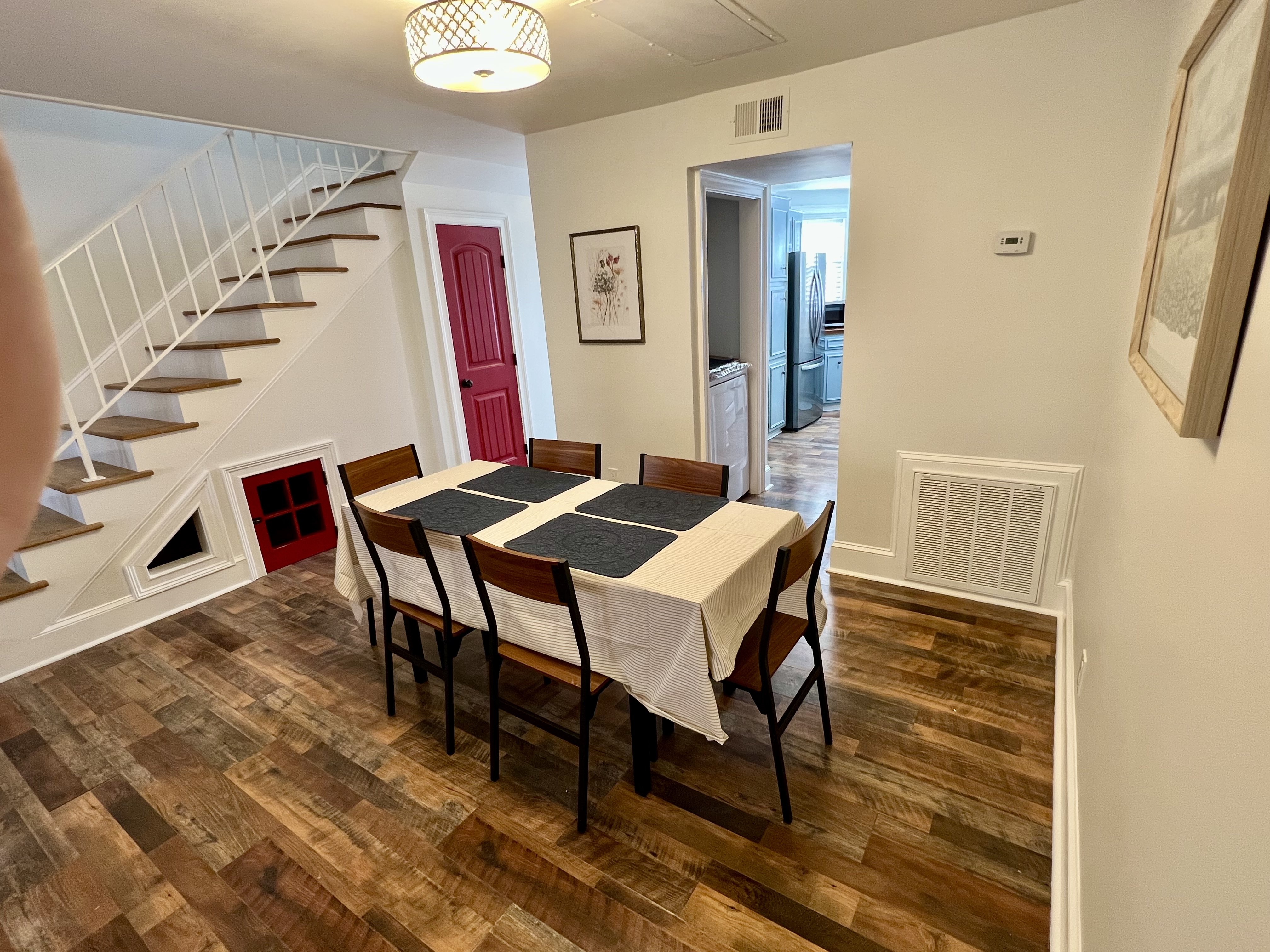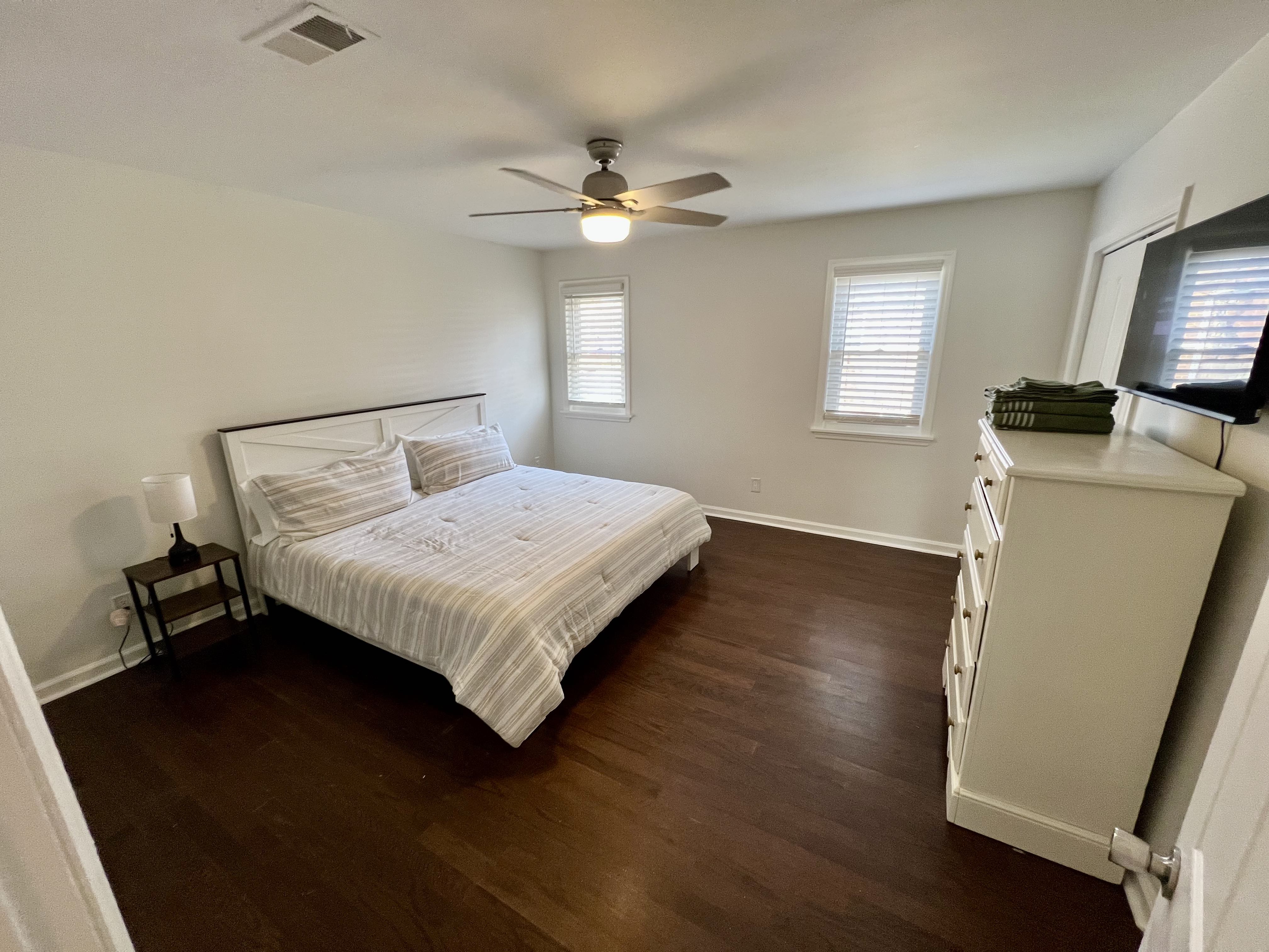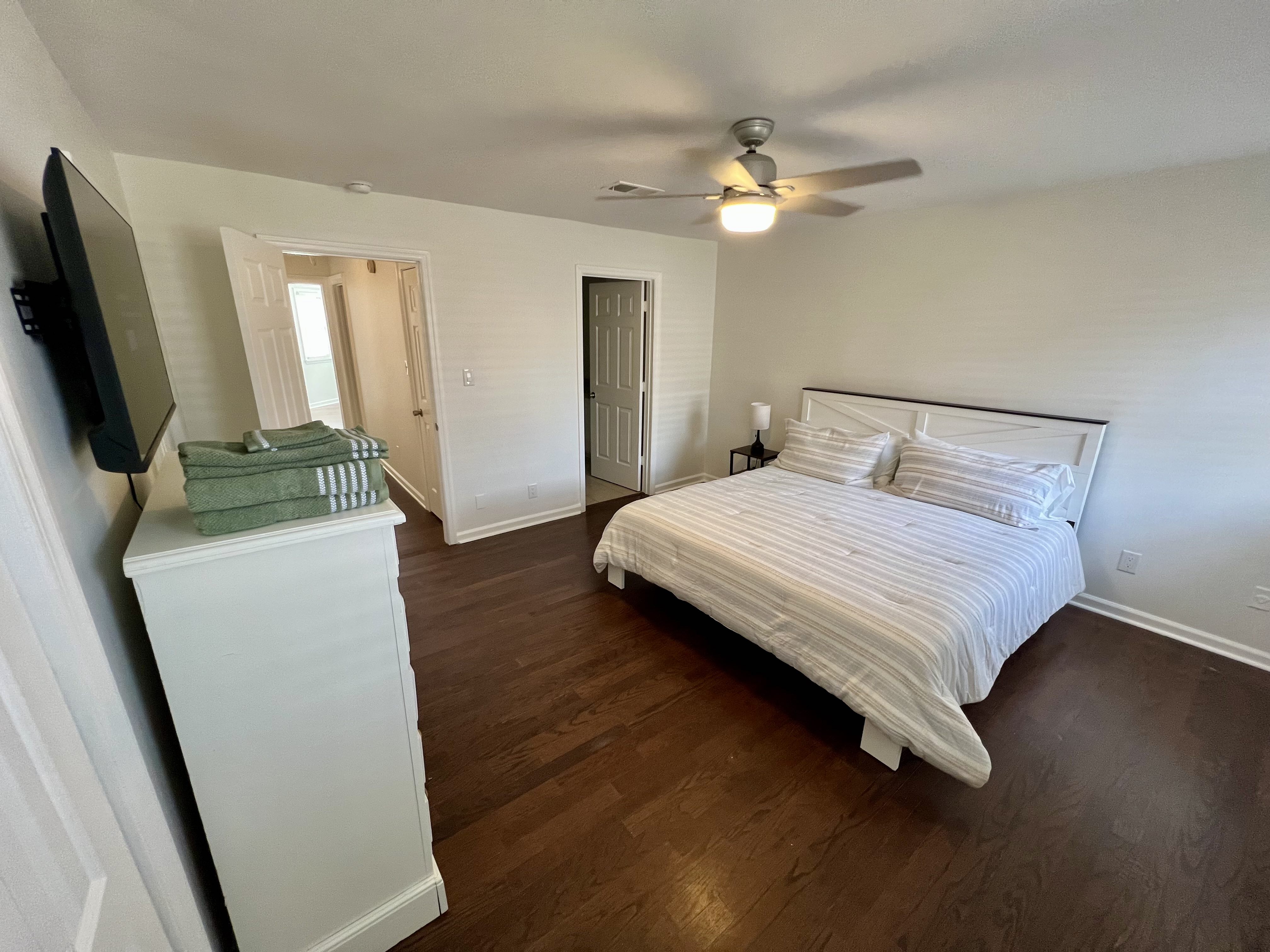 Fully furnished, freshly painted, brick townhome in the heart of Augusta is available for rent. The primary bedroom has a king bed and an ensuite bathroom. The second bedroom has a queen bed. Both bedrooms and the living room have a Smart TV capable of streaming your favorite content. Also, there is a small fenced-in backyard area that's great for grilling or letting your pet get some fresh air.