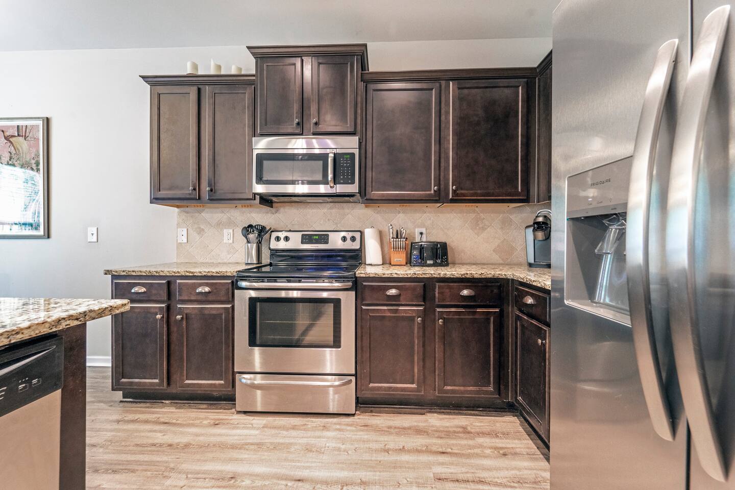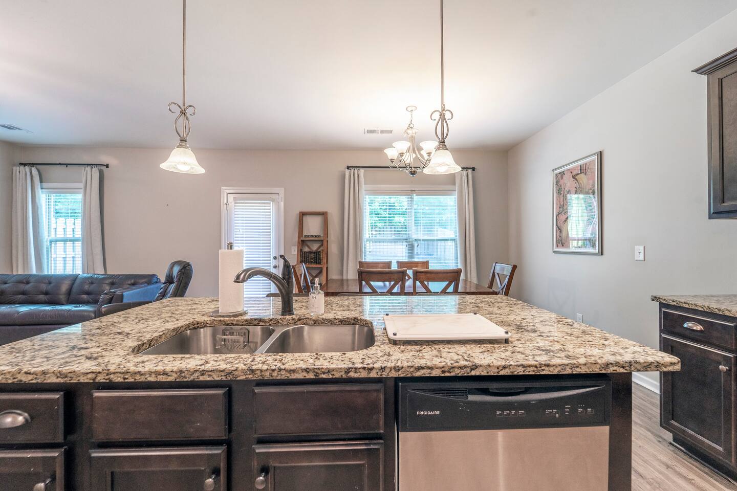We specialize in Insurance Relocations, Corporate & Worker Housing, Military Housing, Extended Stays, & Masters Housing. 4 bedroom, 2.5 bathroom furnished home is fully stocked. There are Smart TVs in every bedroom and the living room. The kitchen has everything you need to prepare your favorite meal. Easy access to Fort Eisenhower. Limited Parking - HOA doesn't allow large work trucks with more than two axles or trailers. It has a double-car garage and two parking spots in the driveway.