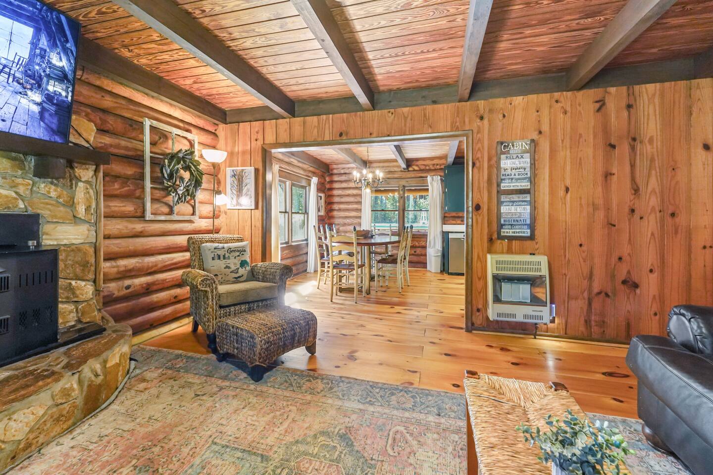 Escape to the country and unwind at our cozy cabin on 50 peaceful acres with beautiful views of a private pond. Relax on the front porch in a rocking chair or swing, take a dip in the pool (open June–Sept.), or enjoy fishing for bream and bass right out back. Whether you’re looking to slow down, explore the outdoors, or simply relax, this is the perfect spot for your getaway.