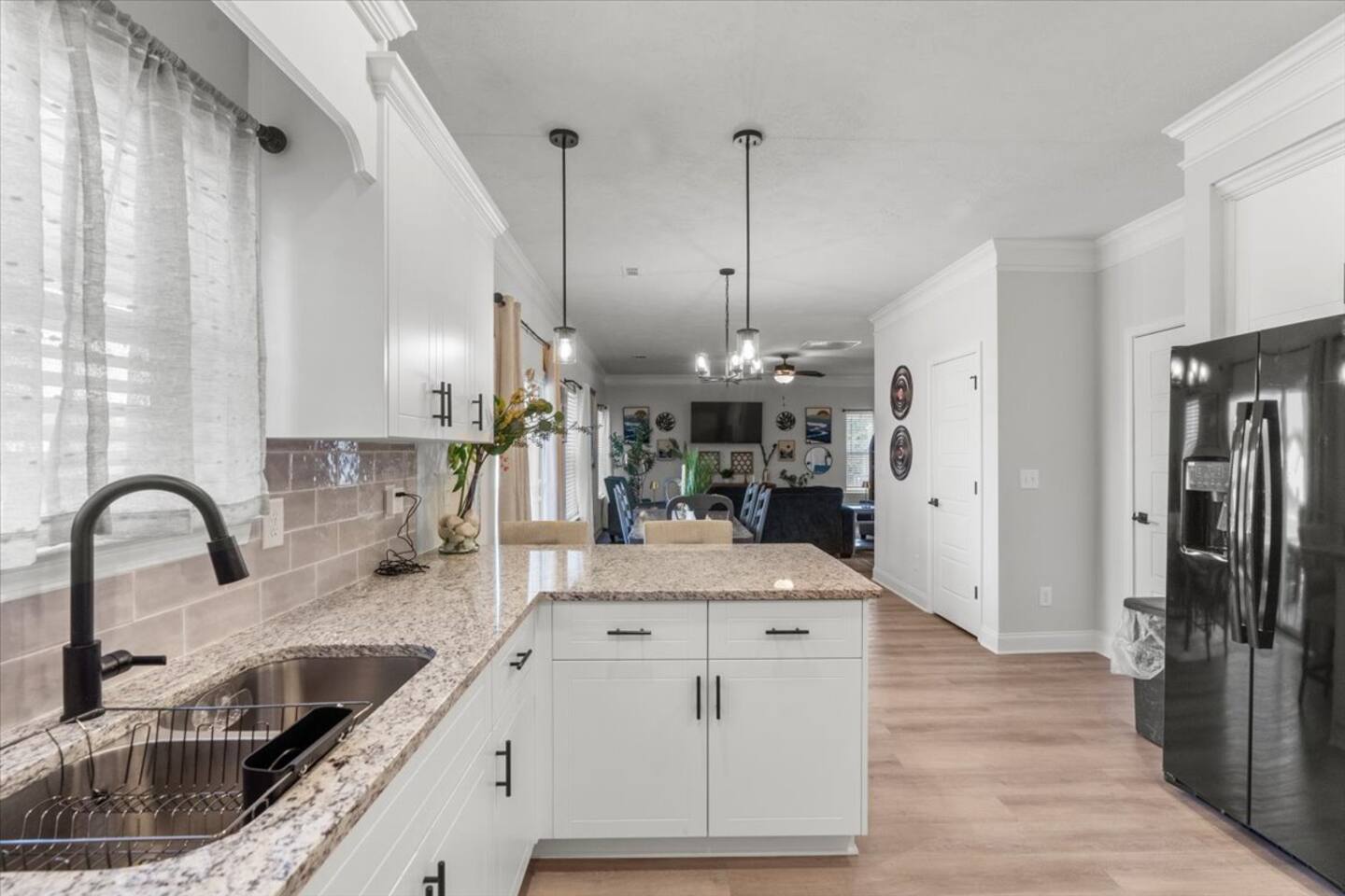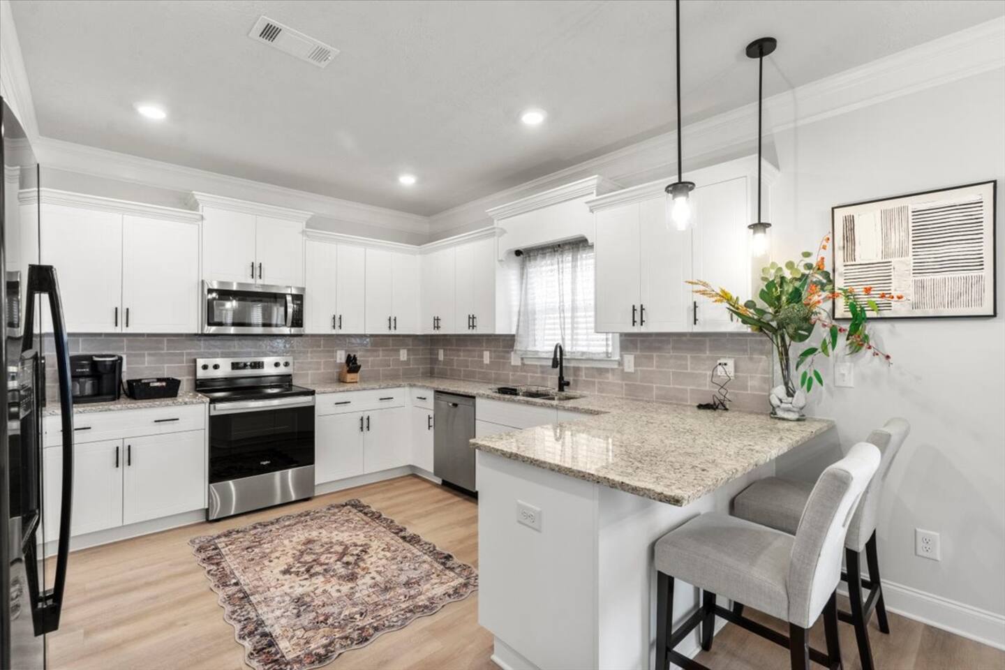 We specialize in Insurance Relocations, Corporate & Worker Housing, Military Housing, Extended Stays, & Masters Housing. This stunning, fully furnished 4-bedroom home combines comfort and style, perfect for families or groups. The spacious kitchen is fully stocked with modern appliances, making meal prep a breeze. Relax in one of the cozy living areas, or enjoy movie nights with Smart TVs in every room. Sleep soundly in the luxurious accommodations featuring two King beds and two Queen beds.